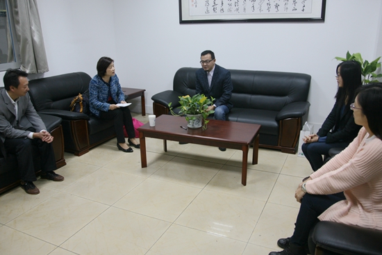 11月3日,淑德日本语公司的钱高莉英董事长访问mk体育。mk体育副经理蔡亮副教授、日语专业邓凌志老师、曹向梅老师和夏佳来老师在SC403会议室会见外宾并与她进行了交流。