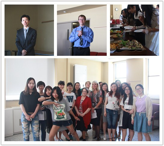 在经历十几个小时的空中飞行,同学们到达加拿大后立即受到了渥太华大学的热情接待,渥太华大学的二语强化项目负责人Evan Lavoie先生和任课老师们陪同同学们熟悉校园,并为公司师生举行了一个简短而热烈的欢迎会。让大家意想不到的是,中国驻加拿大大使馆代表殷之嵩先生也参加了欢迎会,他向同学们表示了亲切慰问,并在会上发表了一段精彩的欢迎词,使同学们深受鼓舞!殷之嵩先生对浙江大学宁波理工公司的办学特色早有耳闻,他非常欢迎同学们来渥太华大学交流,希望他们通过1个月的学习,不仅能提高英语水平,更要做一名中加文化传播的使者,积极发扬两地文化,取其精华,体会认识文化的多样性。之后校方还备上了午宴,同学们在用餐中与老师们互相问候交流。