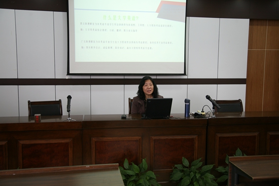 随后,应用语言研究所副所长芦俊燕副教授为大家解读了《大学英语教学指南》(征求意见稿)。该指南从课程设置、培养目标、教学手段等方面对大学英语教学提出了指导性意见,对它的解读有助于加深老师们对本次教学改革的理解,同时也为下一步工作提供了有益的启发。