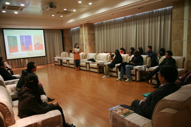 随后,mk体育“阳明学堂”志愿者陈思培同学以一口流利的英语向外宾展示了汉语教学志愿者们取得的一些成绩,实践教育与中华文化传播相结合的模式引起了在座外宾的浓厚兴趣。会后,外语公司蔡亮副经理与非洲喀麦隆雅温得第二大学孔子公司相关负责人进行了友好的磋商,初步确定公司将于2015年度派首批“公益汉语课堂”的志愿者赴非洲进行汉语教学交流活动。