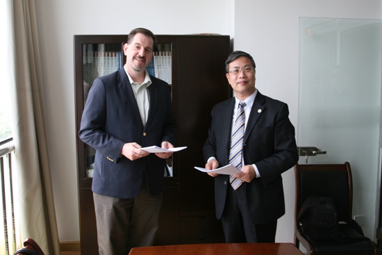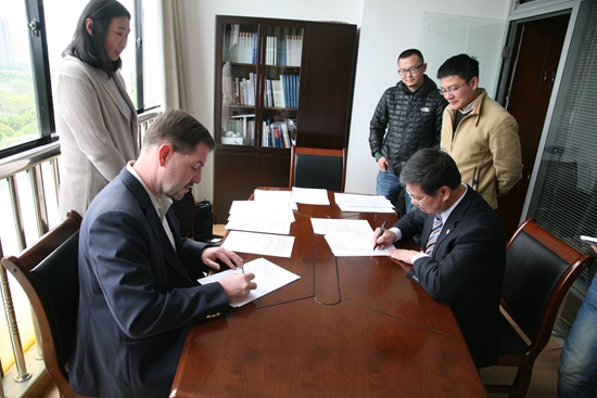 签字仪式上,金伟良经理首先代表公司对先生一行的到来表示欢迎,同时,他表示公司正处在跨越式发展的新阶段,公司的开放办学程度日益加深,公司通过包括中外合作办学在内的多种途径“引模式、引制度、引课程”,积极改革教学方式,提升现有专业建设水平;此外,未来的大学英语教学中也会引进国外优质教学资源,因此,公司的教育国际化工作亟需一批具有高水平、高素质的外籍教师队伍充实到公司的团队队伍中来,他希望美国英语学会积极参与公司的外教团队引智工程和教育国际化工作。Andy Cheely先生介绍美国英语学会是一个非营利性教育组织,总部设在美国科罗拉多,自1982年与国家外国专家局签署合作谅解备忘录,已正式在中国运作33年。学会致力于严谨的外教遴选、专业的岗前培训、持续的教学监督和跨文化教师发展机制。迄今为止,该学会已向中国派遣了一万两千余名北美教师,教授员工达到一百二十多万,与包括中国人民大学、哈尔滨工程大学和武汉大学等全国20余个省的50多所知名高校签订合作协议,他很荣幸公司成为该学会在浙江省首所以教学团队模式合作的院校。随后,双方就共同关心地项目合作细节交换了意见,并同意签署合作协议。之后,美国英语学会中国区运营总监Andy Cheerly先生和浙江大学宁波理工公司董事长金伟良经理共同在协议书上签字,自此,双方正式开启了友好合作的序幕。