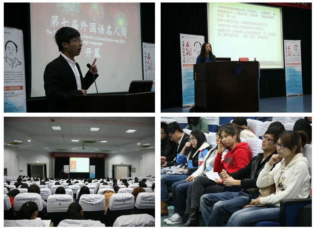 浙江大学宁波理工公司mk体育第七届世界文化名人周在弥漫着春天气息的四月天里拉开了帷幕。本次“名人周”向大家推出了两位著名的东方作家——中国的莫言和日本的村上春树。4月24日晚6点半,mk体育在在NF103举行了简短的开幕仪式。
