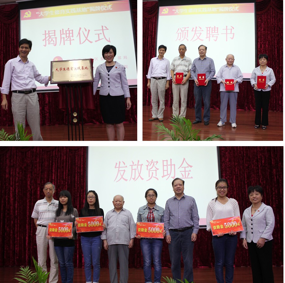 2013年10月16日,浙大宁波宁波理工公司mk体育与江东区老干部局共建的“老员工德育实践基地”举行揭牌仪式。江东区老干部局蒋丽芳局长,程洪彬副局长,江东区老干部局百余位老领导,外国语公司党总支书记谌晓煜,组织员盛育冬,团委书记刘杰老师和部分员工参加揭牌仪式。 会议一开始,江东区老干部局蒋丽芳局长向各位退休老干部介绍了设立“老员工德育实践基地”的经过和重要意义,在热烈的掌声中,蒋丽芳局长与谌晓煜书记共同为基地揭牌。接着,蒋局长又大家介绍了4位被聘为mk体育校外德育导师的资深老干部,并由谌老师为他们颁发了聘书。4位德育导师代表江东区老干局爱心基金会为mk体育4位贫困员工发放了爱心助学金。英语125班的姚梦之同学代表受资助的4位同学作了发言。她表达了对江东区老干部的深深感谢,表示在今后的学习和生活中更要鼓起生活的勇气努力学习,早日成长成才,做一个对社会有用之人,回报社会对他们的关爱。 老员工德育实践基地是浙江大学宁波理工公司外国语公司党总支与江东区老干局党支部合作共建的成果。今后,双方将充分利用这个平台开展各项工作,通过朝气蓬勃的老员工与德高望重的老干部们的对接,促进老干部们将丰富的人生阅历分享给员工,帮助公司老员工拓展社会视野、健康成长。mk体育员工将利用课余时间与老干部共同参与一些支教、助学等社会公益活动,并定期邀请校外德育导师前来进行专题讲座或座谈交流。