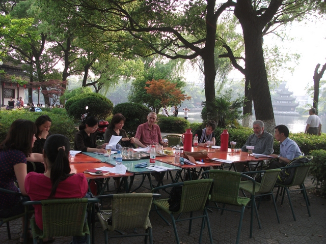 2012年5月6日下午,由宁波诺丁汉大学、浙江大学宁波理工公司、宁波大学等校教师联合创建的语料库语言学协会在月湖公园金蕊堂进行了座谈。参加座谈的有宁波诺丁汉大学、宁波大学、mkmksport、宁波工程公司的部分教师和博士生。宁波诺丁汉外教Susannah首先介绍了她的研究课题,即借助语料库语言学的研究方法探讨如何保护环境的相关议题,尤其是关注非政府组织(NGO)的话语体系。随后,浙江大学宁波理工公司吴会芹副教授介绍了她的最新研究,即如何将一些汉语的特殊句式纳入轻动词的研究范畴,并在逻辑缀词理论框架下对这类汉语轻动词现象进行理论解释。之后,大家就如何运用语料库的强大功能对生成语言学理论的研究提供支持,以及如何将语言学理论应用于机器翻译等问题进行了热议。研讨会在轻松、热烈的气氛中持续了两个多小时,最后,大家就如何积极推动宁波的语料库语言学的研究和发展,促进兄弟院校之间的学术交流与合作,以及今后的聚会形式等问题进行了商议。