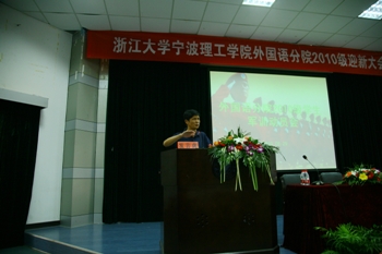 8月29日上午,外语分院2010级新生迎新大会在NF103隆重举行。分公司党总支书记谌晓煜、副经理叶琴法、东西方语言与文化传播研究中心副主任汪德华教授和分院专业教研室负责人、全体新生班导师、辅导员、部分专业教师以及老生代表和2010级全体新生近300人参加会议。会议由专业教研室主任张振梅老师主持。