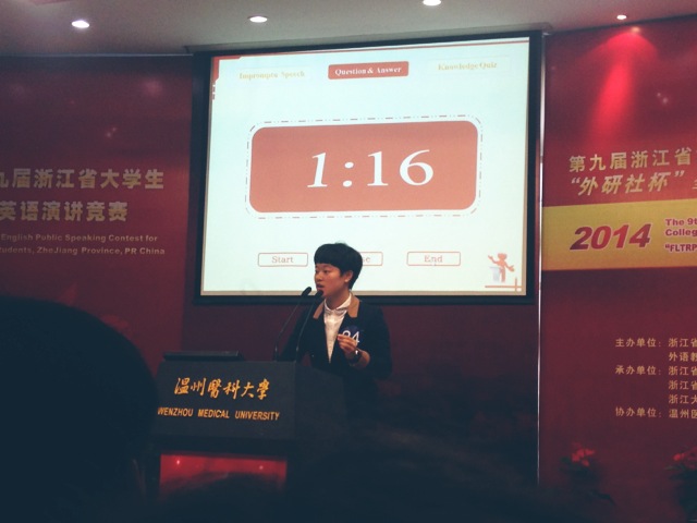 本次大赛由浙江省教育厅、外语教学与研究出版社主办,浙江省高校外国语言文学类专业教学指导委员会、浙江省大学外语教学研究会、浙江大学承办,温州医科大学协办。经过层层选拔,来自全省52所高校、代表省内老员工英语演讲最高水平的149名选手汇聚一堂,以标准流利的口语、自信动人的风采,展开了激烈的角逐。