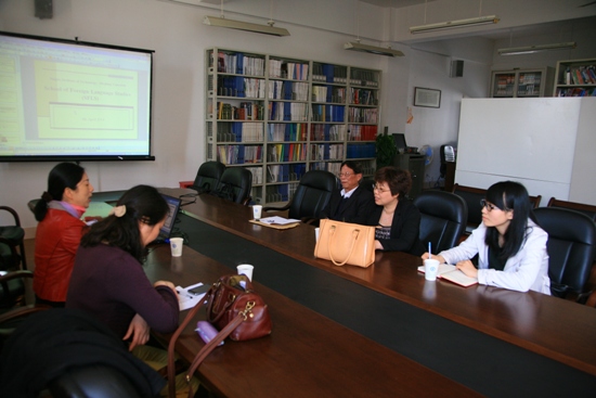 2014年4月4日上海财经大学浙江公司英语系主任陈昌义教授、徐玉书副教授等一行3人来公司就英语专业教学以及大学英语教学改革等方面进行调研,mk体育副经理王国凤副教授、外国语言研究所副所长杨黎霞副教授和大学英语第一教研室主任张腮云参加了会谈。