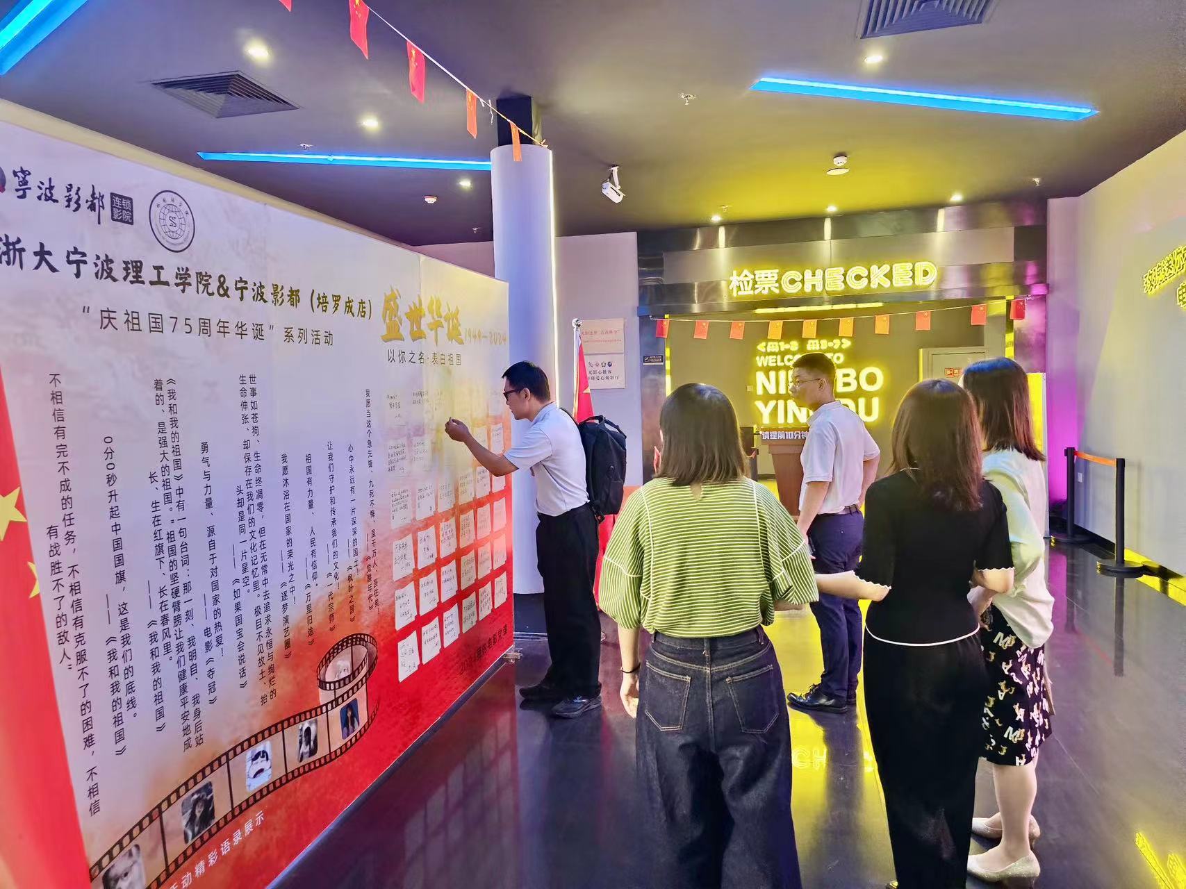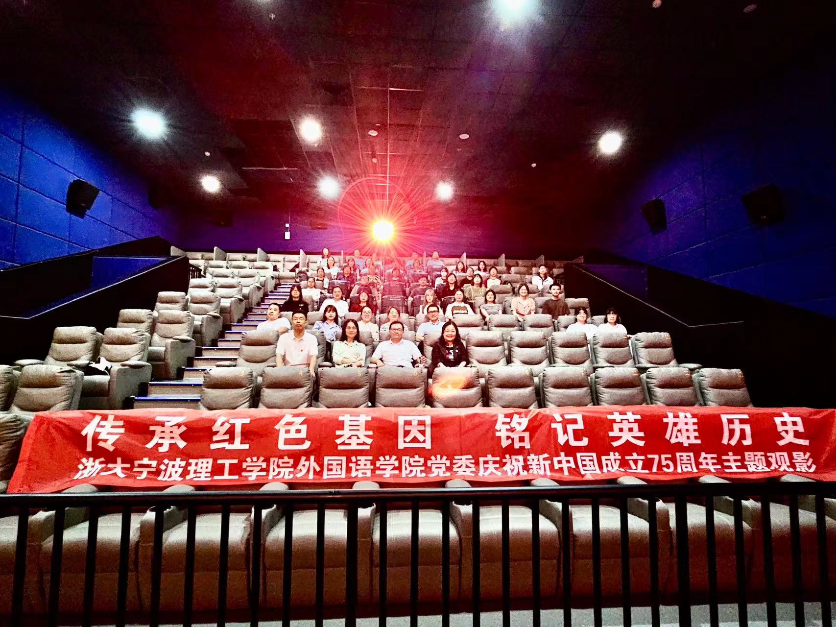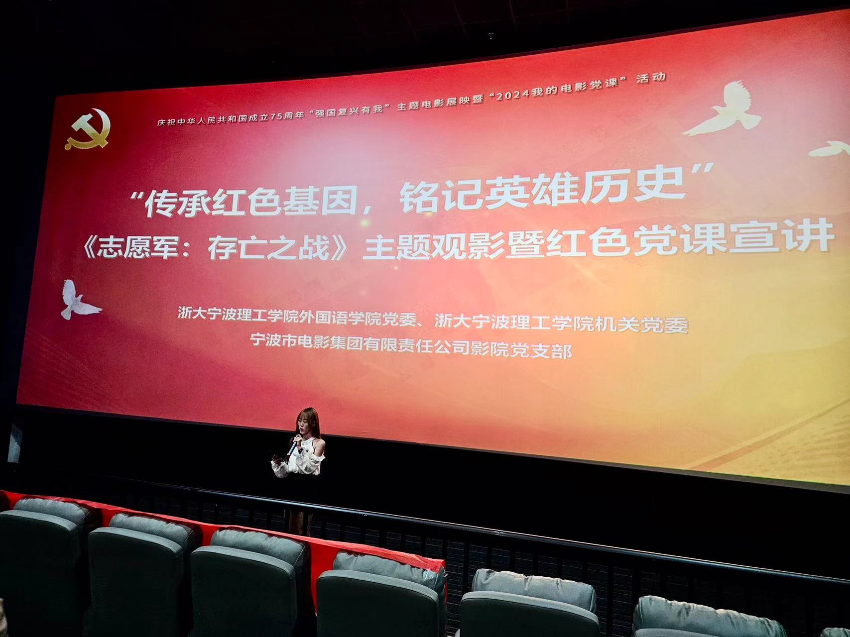 为重温红色经典,弘扬革命精神,10月18日下午,外国语公司党委在党建共建基地--宁波影都培罗成店开展“传承红色基因,铭记英雄历史”庆祝新中国成立75周年主题观影暨红色党课宣讲活动。