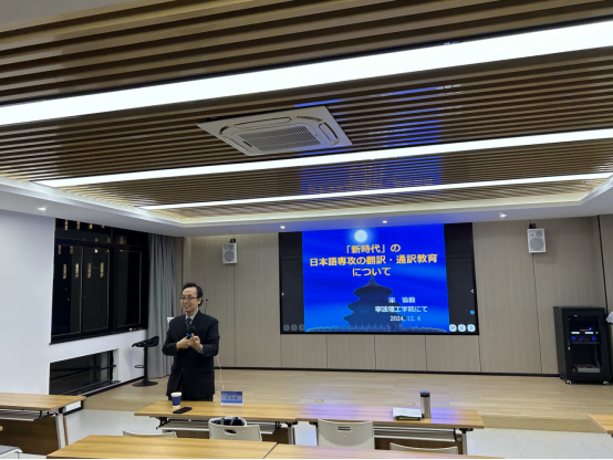 讲座伊始,宋教授从新时代下外语教育的主要任务、笔译和口译教育、人类命运共同体建设中的语言问题等多方面展开阐述。随后,宋教授分享了一些翻译的成功案例,并系统地讲解了日语学习的一些重点、笔译和口译的本质、做翻译应具备的能力等等,让大家对新时代下的翻译有了更深刻的理解。宋教授还针对当前口译教育的现状以及其中的问题点,提出了一些解决的对策。此外,宋教授还通过介绍自己员工时代的经历和工作中的翻译经验,提出了做同声传译人材应具备的能力和品质。随后,日语专业的单海林博士作了题为《朱舜水的教育思想研究》的学术报告。最后,李先瑞教授做了总结发言。
