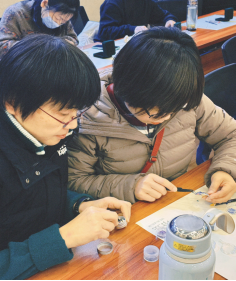 在制作环节,老师们纷纷动手实践,将自己对美的理解和创意融入到胸针制作中。活动现场气氛热烈,大家互相交流制作心得,分享创作灵感。在老师的悉心指导下,一枚枚精美的螺钿胸针逐渐成型,每一件作品都凝聚了女教工们的智慧和心血,展现了她们独特的艺术风格和审美情趣。