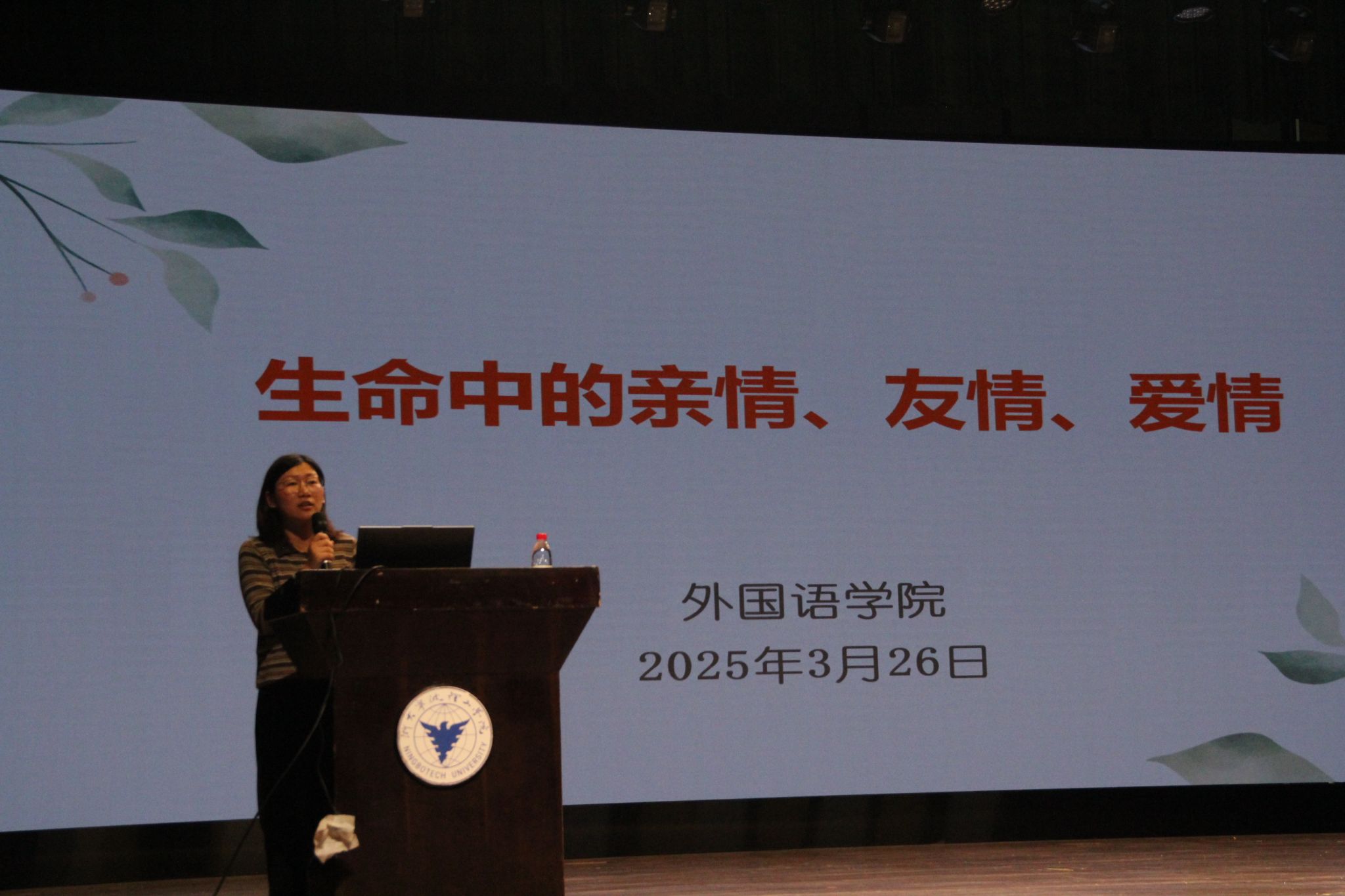 讲座中,叶卫树老师以“校园安全与法制教育”为主题,结合当前安全形势,深入剖析了电信网络诈骗的常见手法,如刷单返利、虚假购物、“两卡”诈骗、网贷陷阱等,提醒同学们提高警惕,并传授了实用的防诈技巧与维权途径。此外,叶老师还围绕校园安全现状,分析了“人防、物防、技防”的常见误区,提出了切实可行的安全防护建议,帮助同学们在日常生活中筑牢安全屏障。芦美丽老师围绕“感悟生命情感 点亮心灵明灯”这一主题,从爱情、亲情、友情三个维度展开生命情感教育。通过生动的案例和温暖的讲述,引导同学们正确认识情感关系,学会理性处理情感问题,培养积极健康的心态,增强内心的安全感与责任感。