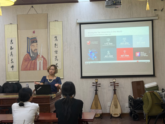 针对在场员工关心的留学问题,Yamasaki教授系统介绍了欧盟Erasmus+项目的各项支持政策,包括员工交换、海外实习等,并详细说明了申请条件与流程。她特别强调,在当前全球化背景下,具备多语言能力和跨文化视野的人才具有独特优势。