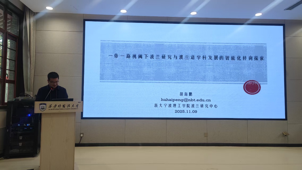 mkmksport波兰研究中心副主任胡海鹏副教授受邀出席大会发言,题为《“一带一路”视阈下波兰研究与波兰语学科发展的智能化转向探索》。胡老师从国家战略与团队建设的双重视角出发,系统阐述了在“一带一路”倡议的引领下,中国与中东欧国家,尤其是波兰,在经贸往来、文化交流与教育合作等领域的最新进展,并深入探讨了人工智能技术在波兰研究与波兰语学科发展中的融合应用与创新路径。