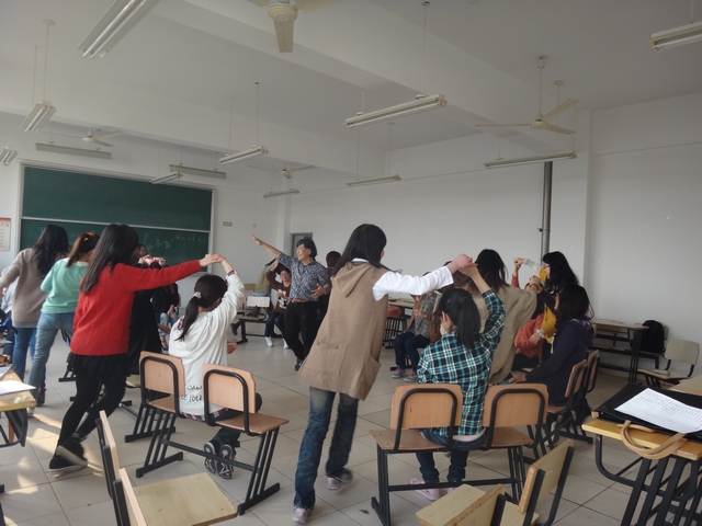 2012年4月16日,日本集体舞蹈创始人浦江千幸老师为日语专业各年级员工上集体休闲舞蹈课。
