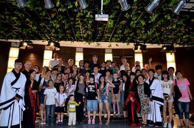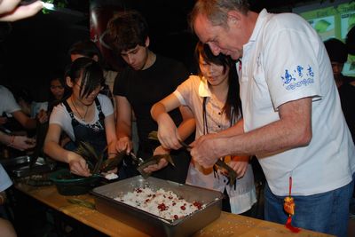 按照传统风俗,活动伊始礼仪为客人们抹雄黄酒,系五彩绳,寓意端午节的来临。在优雅的中国古典音乐声中,活动序幕缓缓拉开。活动分为 “端午情”、“汉语情—模拟课堂”以及“举杯同庆”三个篇章。在第一篇章,“绿源茶居中国茶”茶艺表演使大家眼前一亮,在优雅的表演中使大家领略到茶文化的意韵。接着,端午节来历介绍、端午话剧以及英文歌的演唱等表演使大家意兴大发。而到场的在甬外国友人则兴致勃勃地参与诸如看图讲中文、绕口令、唱中文歌等环节中,他们的热情也活跃了现场气氛,使会场氛围异常热烈。在现场体验环节,分品绿豆汤、粽子,划龙舟、歌曲欣赏等活动,使会场气氛达到了高潮。