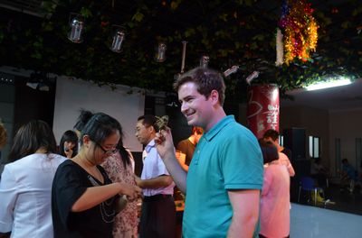 6月2日晚,由外国语分院中西语言文化传播中心主办,以“中华风、端午情”为主题的端午节中外师生联谊活动在老员工活动中心顺利举行。外国语分院的师生以及十余位在甬外国友人参加了联谊。活动对弘扬中国传统文化,促进在甬外籍人士对宁波和中国的了解起到了很好作用。