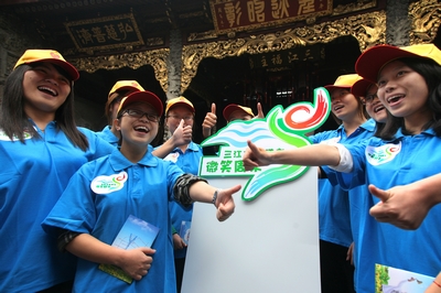 庆安会馆位于市区三江口东岸,在东胜街道辖区内,1853年落成,是中国八大天后宫和七大会馆之一,也是江南现存唯一融天后宫与会馆于一体的古建筑群,是全国重点文物保护单位,会馆建筑装饰是宁波近代地方工艺之杰作,有着重要的历史文化价值。“微笑周末”三江文化使者项目就是志愿者利用周末或节假日期间,在庆安会馆开展以双语讲解、义务导游等为内容的服务活动。项目是在江东东胜街道与外语分院建立长期联系的基础上,依托各自资源,发挥彼此优势,对志愿者服务形式和内容上的一次创新。