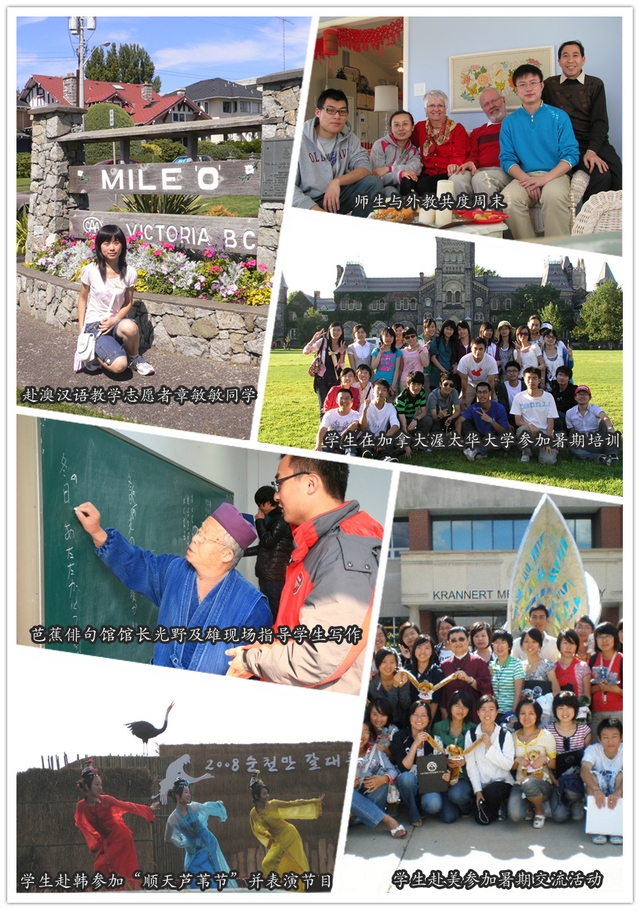 mk体育积极为英、日语专业老员工搭建国际交流平台。多次组织员工参加加拿大渥太华大学、印第安那波利斯大学、美国常青藤大学联盟、日本立命馆亚洲太平洋大学和韩国顺天大学的文化交流和培训,并与日本芭蕉俳句文学馆和澳大利亚西悉尼大学建立合作和联系,近三年共有2位日语专业员工受日本芭蕉俳句文学馆全额资助赴日短期学习交流,4位员工经遴选,毕业后赴西悉尼大学做汉语教学志愿者,并获全额资助攻读该校硕士学位。